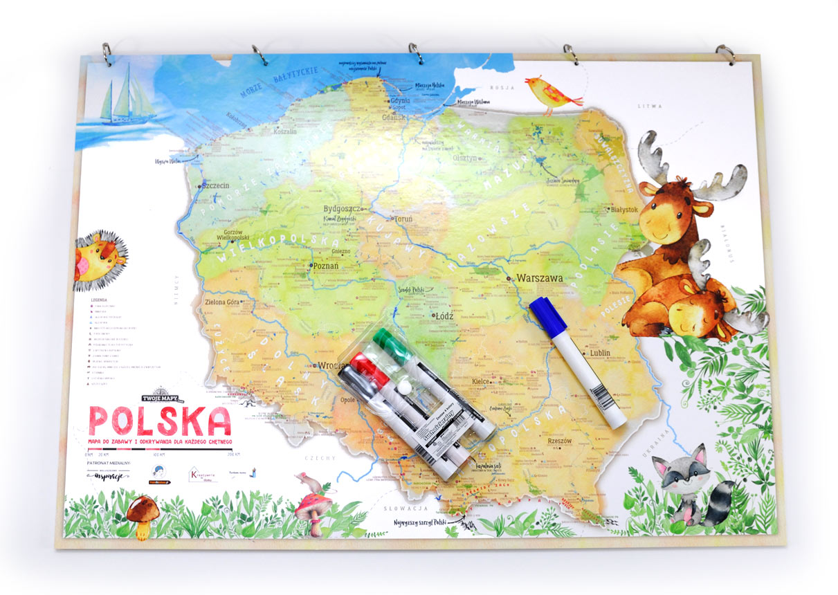 Genialne mapy, wykonane z najlepszej jakości materiałów. Moje serce zdobyły zdecydowanie mapy Polski, po których można rysować pisakami zmywalnymi. Świetna rodzinna zabawa, kiedy chcesz zaplanować kolejną wyprawę. Dużo radości z przemyconą nauką dla najmłodszych. Dla mnie ekstra, do tego w przystępnych cenach.